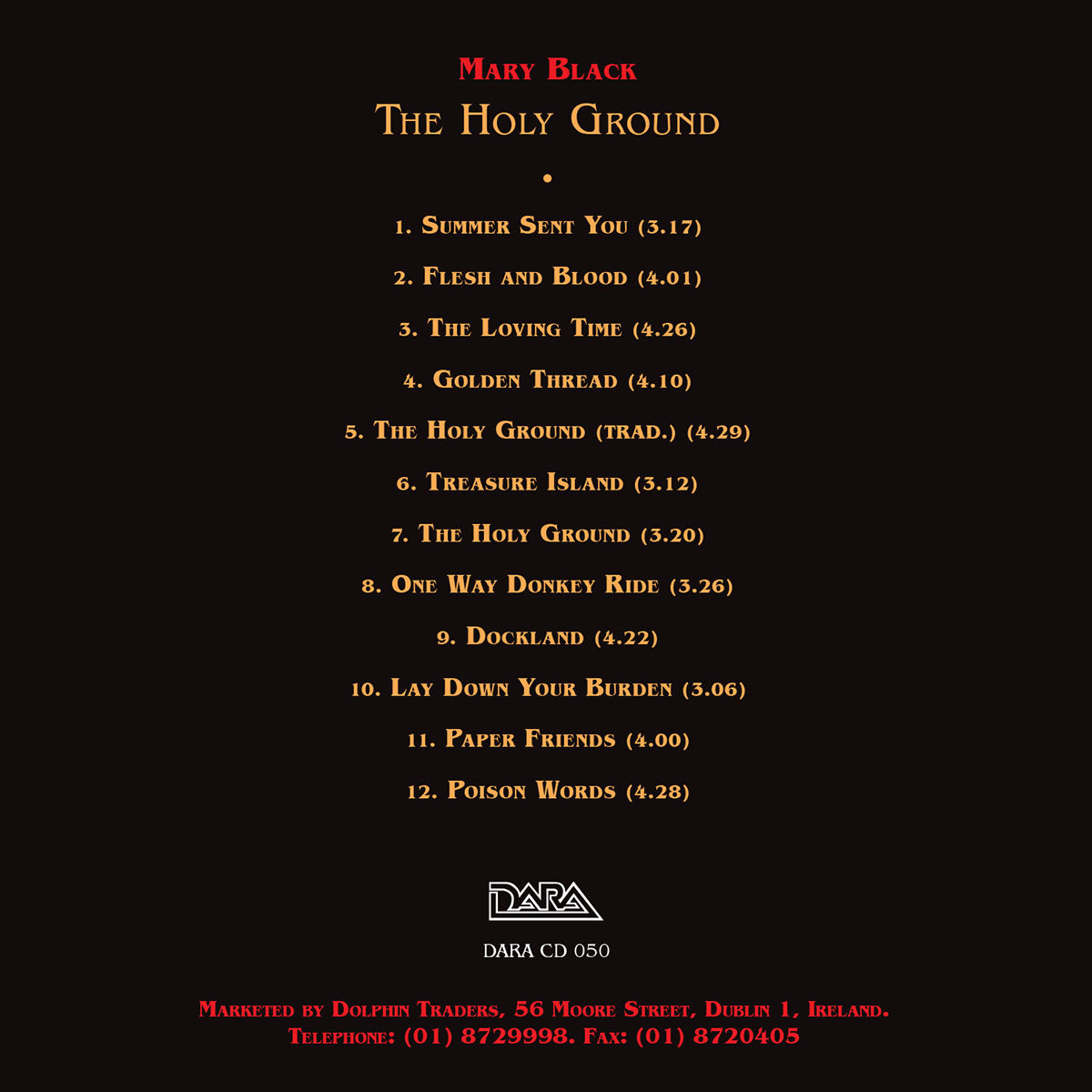 There are two songs called The Holy Ground on this album, the first of which is a modern revoicing of a traditional songs, the second a new Gerry O'Beirne composition. Both show that while Mary has expanded her musical horizons she hasn't lost touch with her roots. Both songs remind you what a pleasure it is to hear Mary's voice with minimal accompaniment. However, John Gorka's Treasure Island, which separates these two songs presents a convincing defence for Declan Sinnott's more adventurous, contemporary arrangements. Then comes the cover of Sandy Denny's One Way Donkey Ride, another song that's effectively unadorned but, as we've come to expect from Mary and the band, no less chilling or potent.